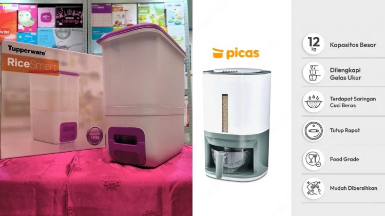 1. Picas Tempat Beras Putih Estetik dengan Saringan