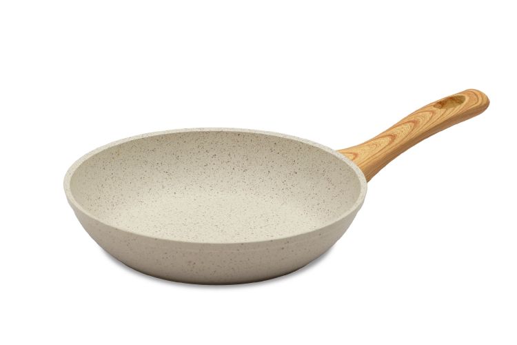 Wajan ini hadir dengan permukaan yang dilapisi keramik anti-lengket, lapisan yang mencegah makanan melekat sehingga proses memasak dan membersihkan jadi lebih mudah. Gagangnya anti panas bergaya kayu memberikan kenyamanan dan tampilan estetik di dapur.