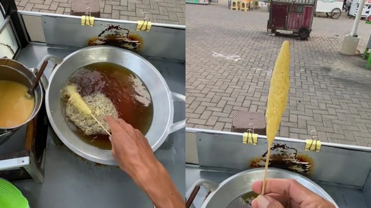Begitu adonan mulai membentuk sarang di minyak panas, segera gulung menggunakan lidi atau tusuk sate. Jangan tunggu terlalu lama karena telur akan cepat matang dan mengeras, sehingga susah digulung. Lakukan dengan gerakan cepat dan hati-hati agar hasilnya padat, rapi, dan tidak mudah ambyar saat diangkat.