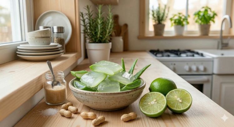 3. Tuangkan perasan jeruk nipis segar ke dalam potongan lidah buaya.