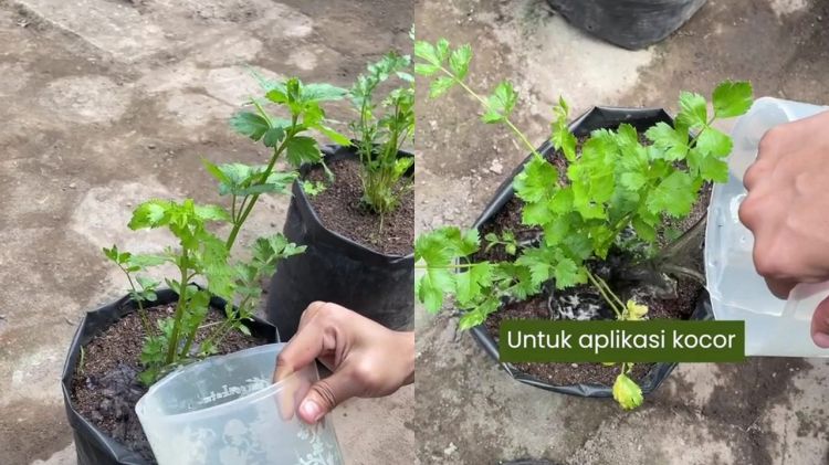 2. Siramkan larutan ke tanaman seledri secara merata.
