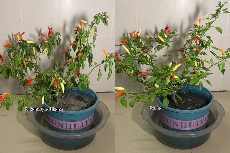 Saat baskom sudah berisi air, tanah dalam pot akan otomatis menyerapnya dari bawah. Proses ini membuat kelembapan lebih merata hingga ke dalam media tanam, tidak hanya di permukaan. Dengan begitu, akar cabai bisa mengakses air dengan lebih maksimal dan perlahan-lahan memulihkan kelayuan.