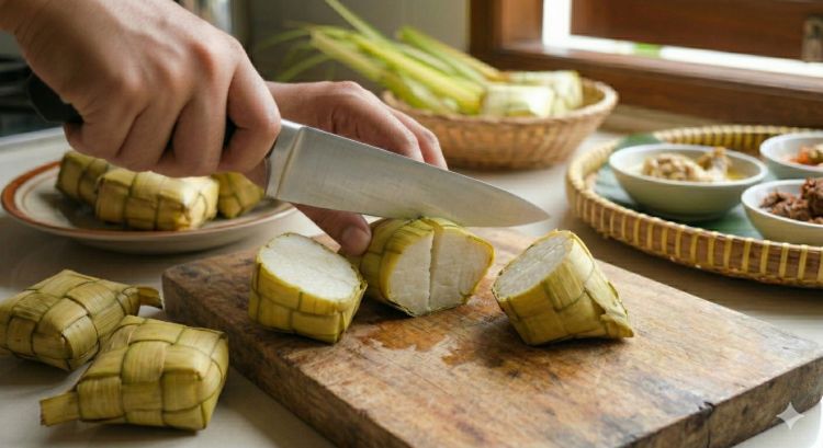 Solusi mengiris ketupat pulen agar hasilnya rapi dan tidak menempel di pisau